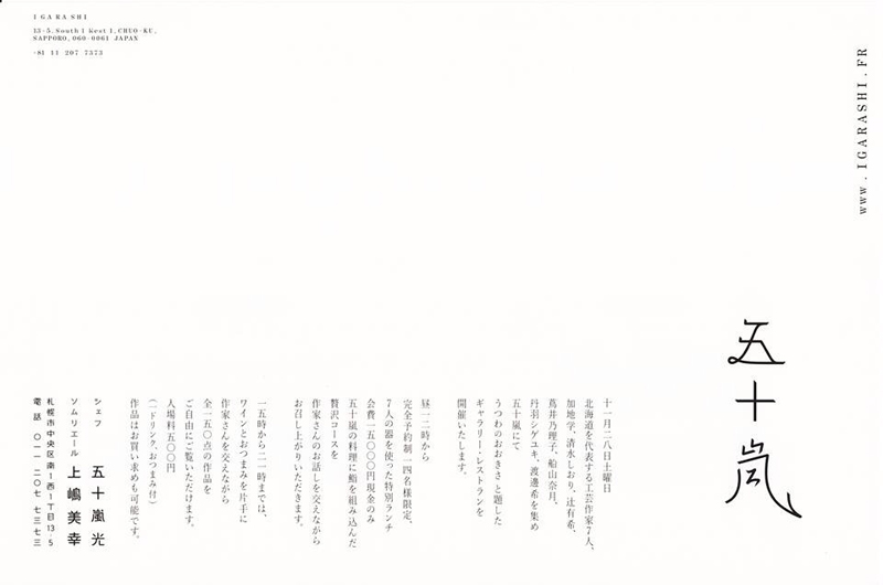 【イベントFacebookページ】https://www.facebook.com/kogei.sapporo.igarashi/timeline