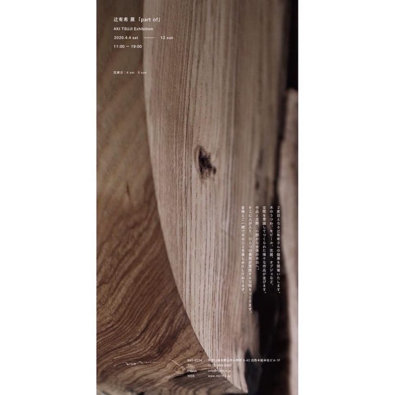 【日時】4月4日(土)〜 4月12日(日) 11:00〜19:00 【場所】norm (和歌山市小野町3-43旧西本組本社ビル1F)