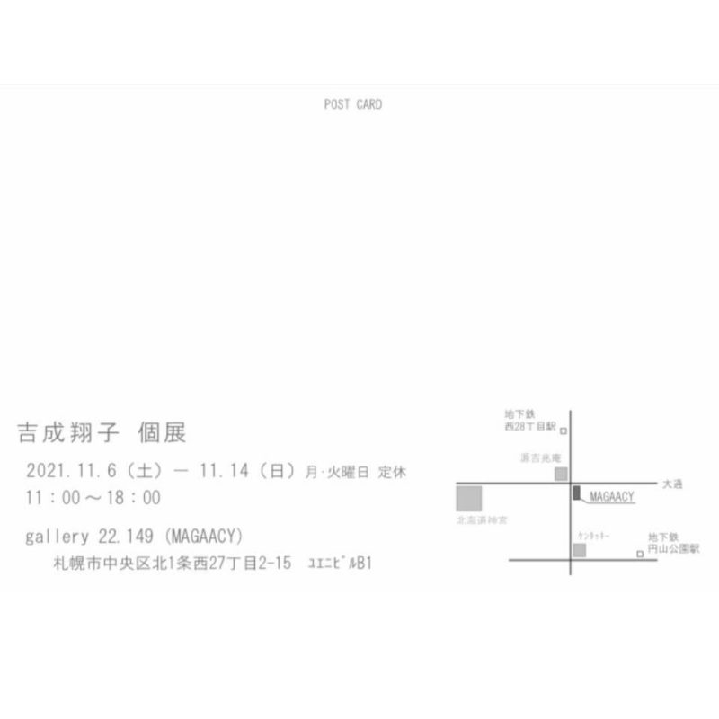 11月6日(土)〜14日(日) 月・火休 11:00〜18:00 gallery22.149(MAGAACY) 札幌市中央区北1条西27丁目2-15 ユエニビルB1